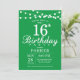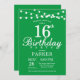 16th Birthday Invitation with String Lights. Green Background. Kids Birthday. Boy or Girl Lady Elegant bday Invite. 13th 15th 16th 18th 20th 21st 30th 40th 50th 60th 70th 80th 90th 100th, Any age. For further customisation, please click the "Customise it" button and use our design tool to modify this template.