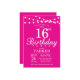 16th Birthday Invitation with String Lights. Hot Pink Background. Kids Birthday. Girl Lady Elegant bday Invite. 13th 15th 16th 18th 20th 21st 30th 40th 50th 60th 70th 80th 90th 100th, Any age. For further customisation, please click the "Customise it" button and use our design tool to modify this template.