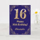 16th Birthday Navy Blue and Gold Glitter Frame Card