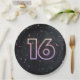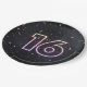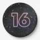 16th Birthday Neon Sign On Black Paper Plate
