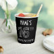 This stylish 1920s/1930s era inspired art deco style birthday paper cup design has a personalised name, along with the message “16TH BIRTHDAY PARTY!”. The number “16TH” has a fancy geometric lined styling. Luxurious birthday themed paper cups like these might be used at a party in celebration of somebody’s sixteenth birthday, or some other 16th event. [~Z0000658]