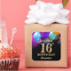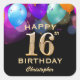 16th Birthday Party Black and Gold Balloons Square Sticker