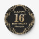 16th Birthday Party Black and Gold Glitter Frame Paper Plate