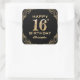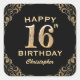 16th Birthday Party Black and Gold Glitter Frame Square Sticker
