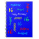 What a wonderful, personalised spiral notebook Guest Book for a 16th birthday party or any other occasion. On the cover, Name and Age repeats in different fonts and primary colours on a bright blue background. Easy to personalise - just CHANGE NAME, AGE, and OCCASION in ONE PLACE. Supports name up to 9 characters. A colourful and fun Birthday Party Guest Book - easy to change for ANY NAME, ANY AGE. All Rights Reserved © 2014 Alan & Marcia Socolik.