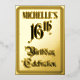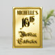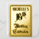 The front of this ornate sixteenth birthday celebration/party foil invitation design features the message “16th Birthday Celebration” in luxurious script-style text. It also features a personalised name. The back features personalised details about the event, such as the date, time, place/venue, and any other important information. Fancy, luxurious, personalised invitations like these might be used to invite guests to a birthday celebration/party being held in celebration of somebody’s sixteenth birthday. [~Z0000596]