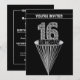 16TH Birthday Party Invitation - Silver and Black,