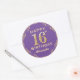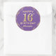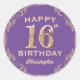 16th Birthday Party Purple and Gold Glitter Frame Classic Round Sticker