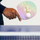 Unique 16th birthday party ping pong paddle featuring purple butterflies and pink flowers on a rainbow of colours background.  Original design by Anura Design Studio.