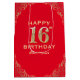 16th Birthday Party Red and Gold Glitter Frame Medium Gift Bag
