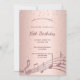 A modern, stylish and glamourous invitation for a Sweet 16, 16th birthday party. A faux rose gold metallic looking background with an elegant faux rose gold diamond sprinkle and music notes. The name is written with a modern dark rose gold coloured hand lettered style script. Templates for your party details.