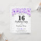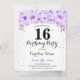 16th Birthday Party - Silver Purple Flowers Invitation