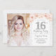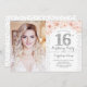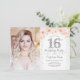 16th Birthday Party With Photo - Silver Pink White Invitation