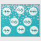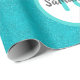 An elegant, glamourous and girly wrapping paper. Teal, green coloured faux glitter with faux diamonds. Perfect for an elegant 16th birthday party for her. White and teal coloured frames with templates for name and age. Age number 16 in teal, name in black. The name is written with a hand-lettered style script.