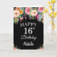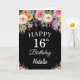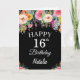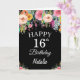 16th Birthday Watercolor Floral Flowers Black Card with personalised name and age. For further customisation, please click the "Customise it" button and use our design tool to modify this template.