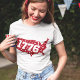 This fun red and white unisex t-shirt has patriotic white stars on a red map of the United States. On top of the country is the year 1776. It’s a great design for the 4th of July!
