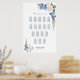Help your guests find their table with this blue and white rose floral wedding seating chart. It is suitable for a wedding with 17 tables and 170 guests.