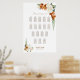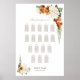 Help your guests find their table with this burnt orange and white rose floral wedding seating chart. It is suitable for a wedding with 17 tables and 170 guests.
