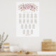 Help your guests find their table with this pink floral wedding seating chart. It is suitable for a wedding with 17 tables and 170 guests.