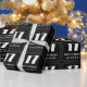 This vintage style and 1920s-1930s style inspired birthday-themed wrapping paper design features a large art deco look inspired number "17", the message "Happy 17th Birthday,", a personalised name, and a border pattern consisting of thin lines. Wrapping paper like this might be used when giving a gift or present in honour of somebody’s seventeenth birthday. [~Z0000460]