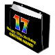 This fun and colourful birthday-themed giftbag design features a large number "17" with a rainbow spectrum gradient inspired pattern, along with the message "Happy 17th Birthday,", and a personalised name. The background is coloured black. A vibrant birthday themed gift bag like this might be used when giving a gift or present in celebration of somebody’s 17th birthday. [~Z0000521]