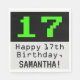 This nerdy and geeky birthday-themed paper napkin design features a large green retro video game style number "17" on a black coloured background. It also features the birthday greeting message "Happy 17th Birthday,", and an editable name. Birthday themed paper napkins like this might be fun to use at a celebration being held to honour somebody who is celebrating their seventeenth birthday. [~Z0000404]