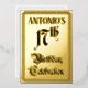 The front of this luxurious seventeenth birthday party/celebration foil announcement design features the message “17th Birthday Celebration” in fancy script-style text. It also features a custom name. The back features personalised details about the event, such as the date, time, place, and any other information that may be relevant. Opulent, elaborate, customised invitations like these might be used to invite guests to a birthday celebration being held in celebration of somebody’s 17th birthday. [~Z0000596]