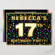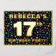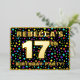 The front of this joyful seventeenth birthday celebration foil invitation card design features a customisable name, a large number “17th”, the message “BIRTHDAY PARTY!”, and a border. The background of the front features an eye-catching, multicolored stars pattern. The back features personalised details about the event, such as the date, time, location/venue, and any other information that may be important. Personalised invitations like these might be a fun way to invite guests to a birthday gathering/party being held to celebrate somebody’s 17th birthday. [~Z0000600]