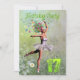 A beautiful ballerina flower fairy dancing on a birthday party invitation. The ballerina is wearing a white tutu, and has trails of flowers coming from her hair. She is dancing through a meadow full of daisies.