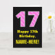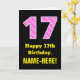 17th Birthday: Pink Stripes and Hearts "17" + Name Card
