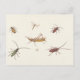 NewParkLane - Vintage Postcard, featuring a 17th century drawing in watercolor of seven different insects.