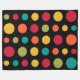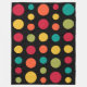 A design made up of five rows of seven circular spots ordered by size and arranged in alternating directions in an attractive pallet of colours.