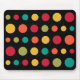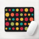A design made up of five rows of seven circular spots ordered by size and arranged in alternating directions in an attractive pallet of colours.