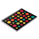 A design made up of five columns of seven circular spots ordered by size and arranged in alternating directions in an attractive pallet of colours.