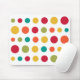A design made up of five rows of seven circular spots ordered by size and arranged in alternating directions in an attractive pallet of colours.