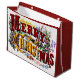 1876 Merry Christmas colourful gift bag with red, green, blue, purple, and gold colours.