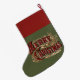 Red and Gold rustic 1876 Merry Christmas design on this Christmas stocking. Customise the name.