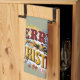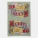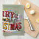 1876 Merry Christmas kitchen towel in many colours - red, green, blue, purple, and gold.