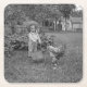 1880's Adorable Girl and Rooster Cart in Garden Square Paper Coaster