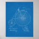 1885 Vintage high wheeler or Penny farthing bicycle US patent technical design illustration. Lever propelled.