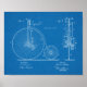 1885 Vintage high wheeler or Penny farthing bicycle US patent technical design illustration. Unique pedal lever drive