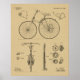 1889 Vintage chainless lever propelled bicycle with brake detail. US patent technical design drawing. All of our U.S. patent drawings have been restored and enhanced so they look great on small to large prints for framed art.