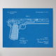 1897 Vintage gas-operated magazine-pistol by Browning. US patent technical design drawing. All of our U.S. patent drawings have been restored and enhanced so they look great on small to large prints for framed art.