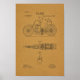 1897 Vintage Steam bicycle US patent technical illustration. On an antique sepia tone background.