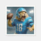 A lion wearing football gear, with a fierce expression, prepares to throw a football on the field as bright stadium lights illuminate the scene
