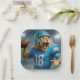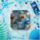 A lion wearing football gear, with a fierce expression, prepares to throw a football on the field as bright stadium lights illuminate the scene