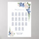 Help your guests find their table with this blue and white rose floral wedding seating chart. It is suitable for a wedding with 18 tables and 180 guests.
