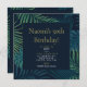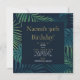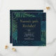 A modern, elegant birthday party invite, featuring a tropical leaves background in different shades of green and a dark blue centre. Th text is elegant in gold and white. Personalise the invite with the name, age, party date and time, party address and RSVP details. If you wish to add any other text such as details on present ideas or surprise party details you can do this too!