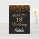 18th Birthday Black and Gold Glitter Card with personalised name. For further customisation, please click the "Customise it" button and use our design tool to modify this template.