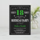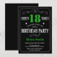 18th Birthday Invitation Black and Green Typography. Chalkboard. Black and White Background. Adult Birthday. Male Men or Women Birthday. Kids Boy or Girl Lady Teen Teenage Bday Invite. 13th 15th 16th 18th 20th 21st 30th 40th 50th 60th 70th 80th 90th 100th. Any Age. For further customisation, please click the "Customise it" button and use our design tool to modify this template.